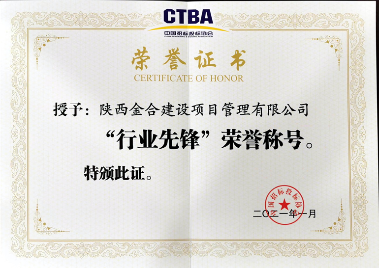 2021年1月20日,我公司被中国招标投标协会授予招标代理业务“行业先锋”称号。中国招标投标协会在《招标投标法》实施20周年之际时,面向2010年前加入协会的单位中推选出,在招标投标行业制度建设、行业健康有序发展等方面发挥重要作用,并且符合推选相关条件的单位,授予其“行业先锋”称号。