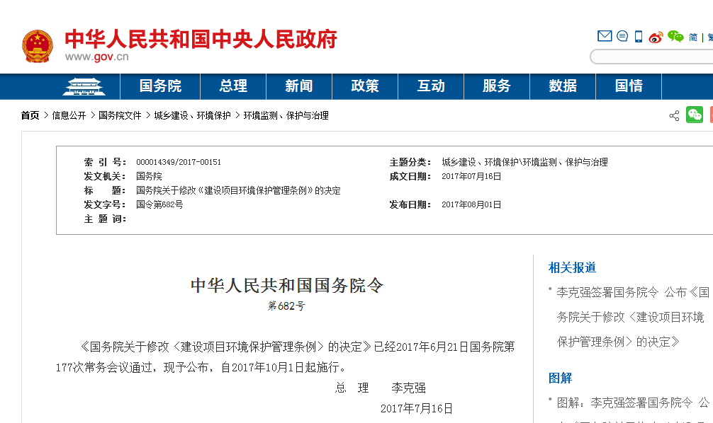 国务院关于修改《建设项目环境保护管理条例》的决定